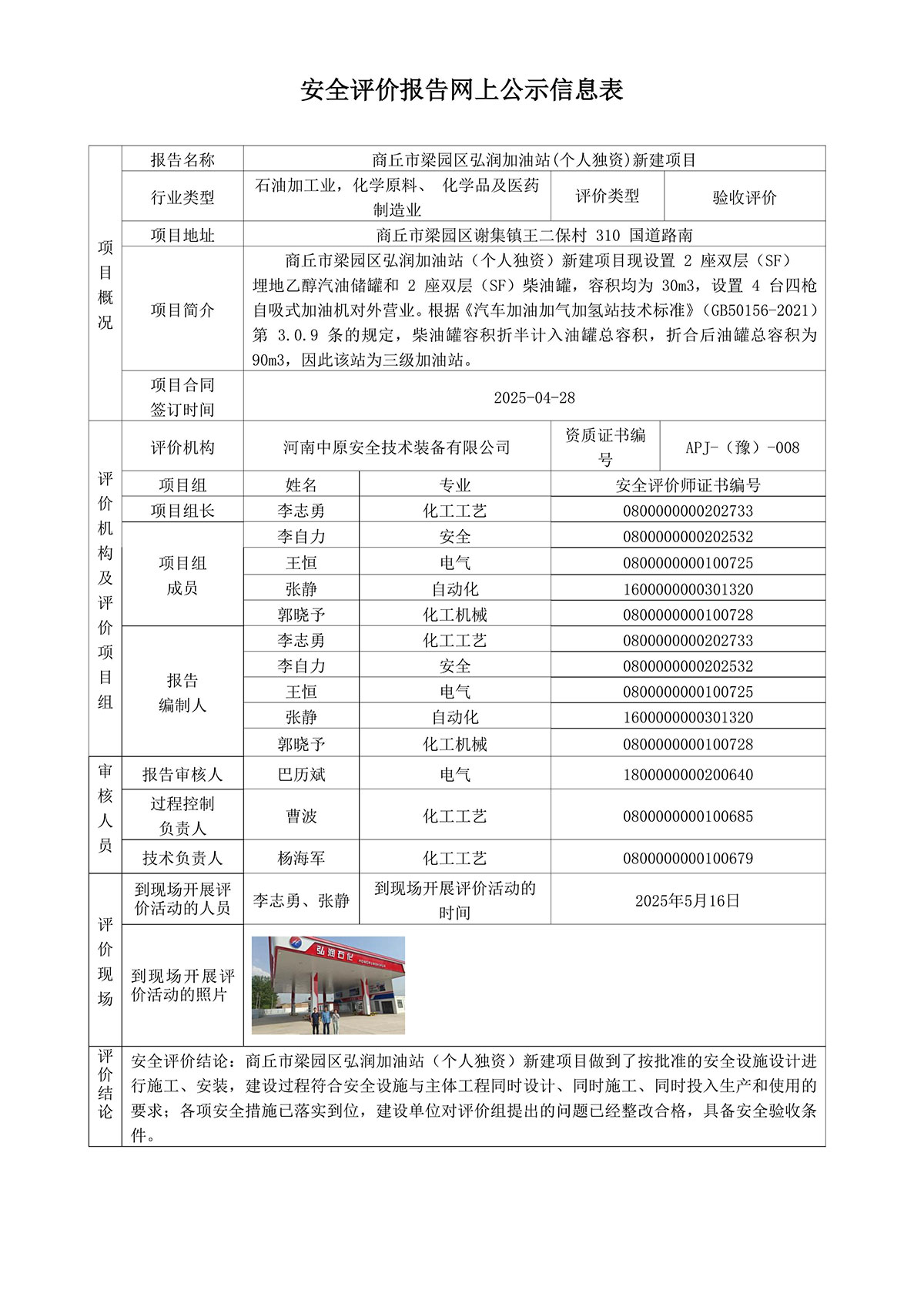 商丘市梁园区弘润加油站(个人独资)新建项目