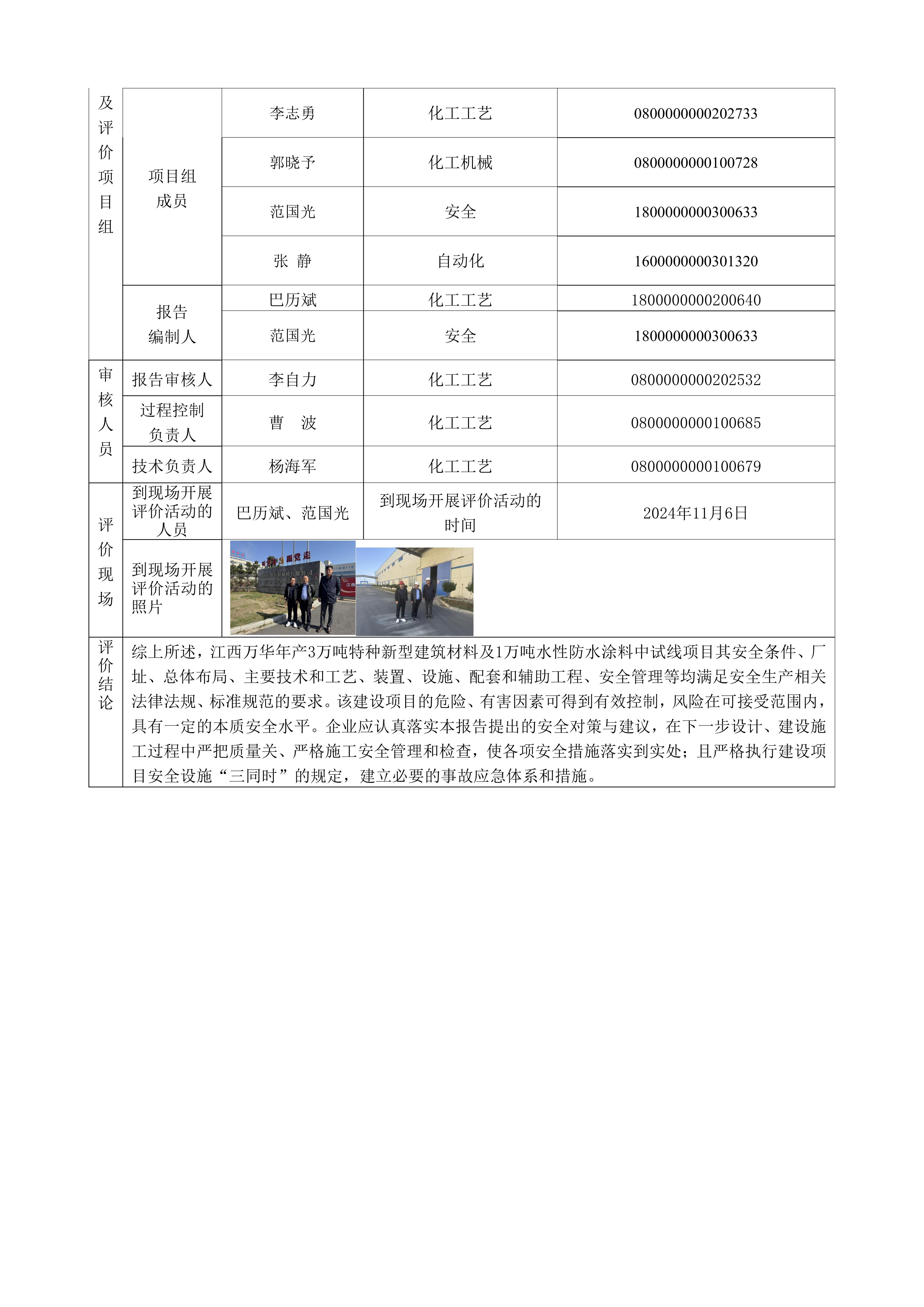 江西万华年产3万吨特种新型建筑材料及1万吨水性防水涂料中试线项目安全预评价报告