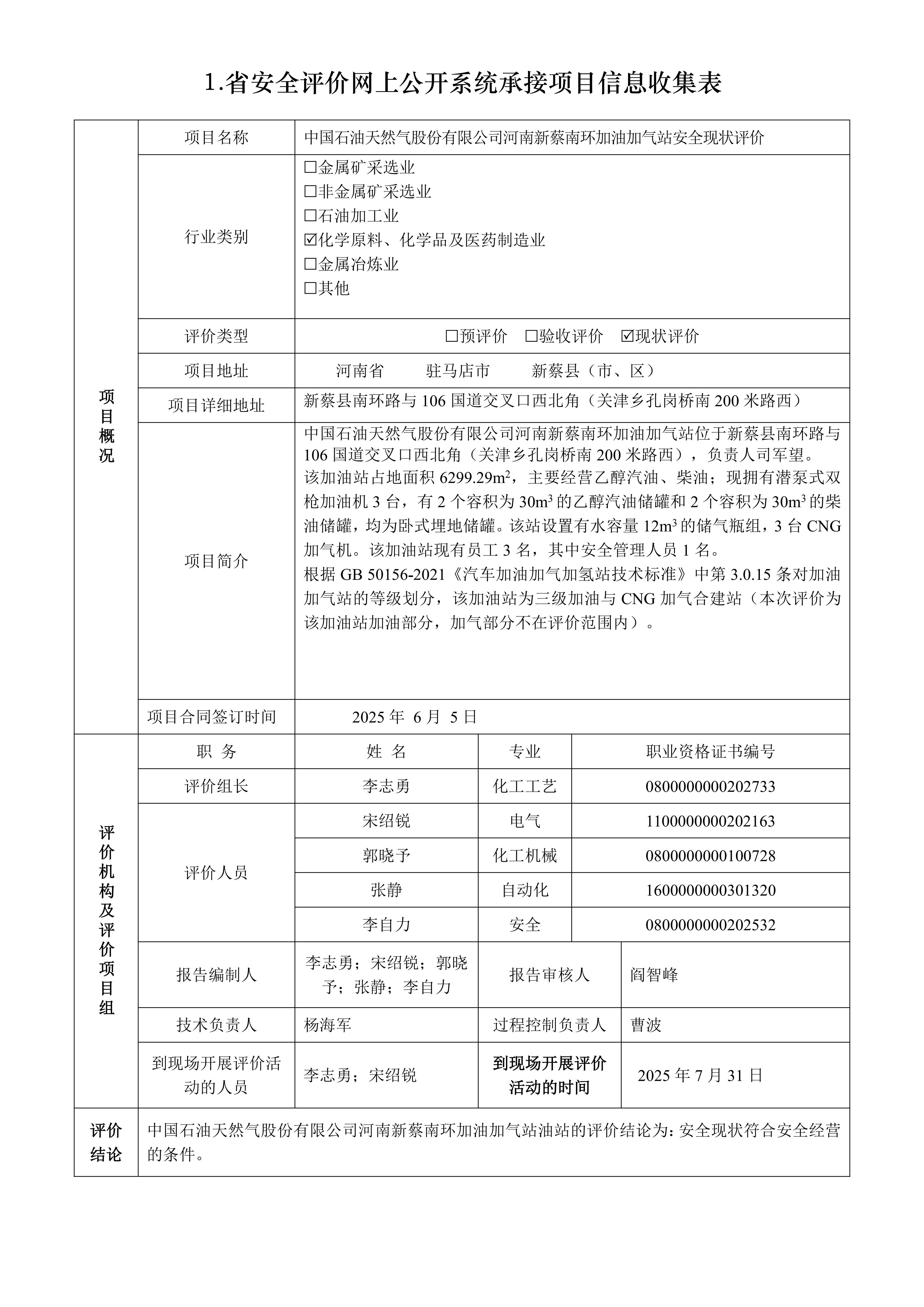 中国石油天然气股份有限公司河南新蔡南环加油加气站