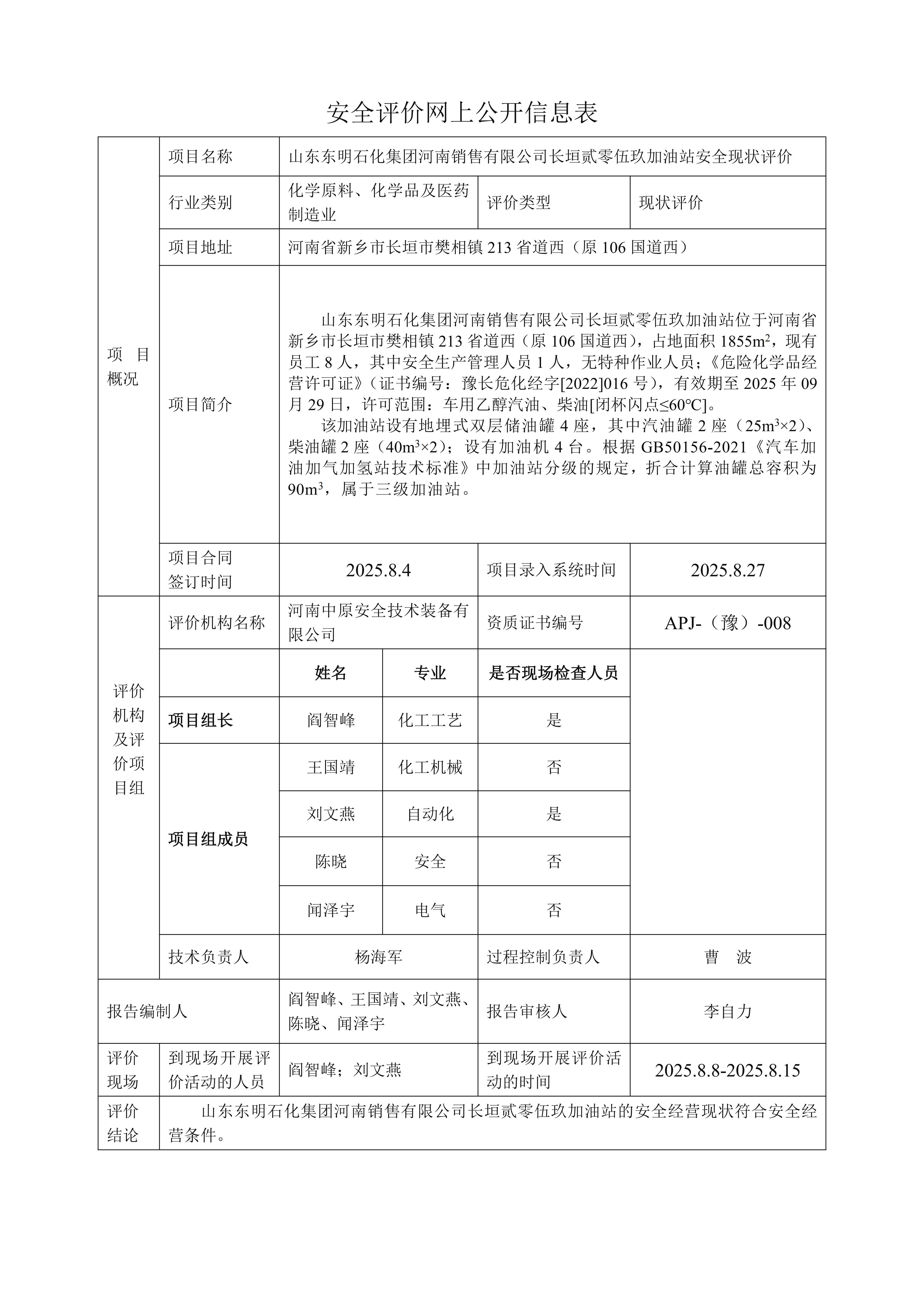 山东东明石化集团河南销售有限公司长垣贰零伍玖加油站