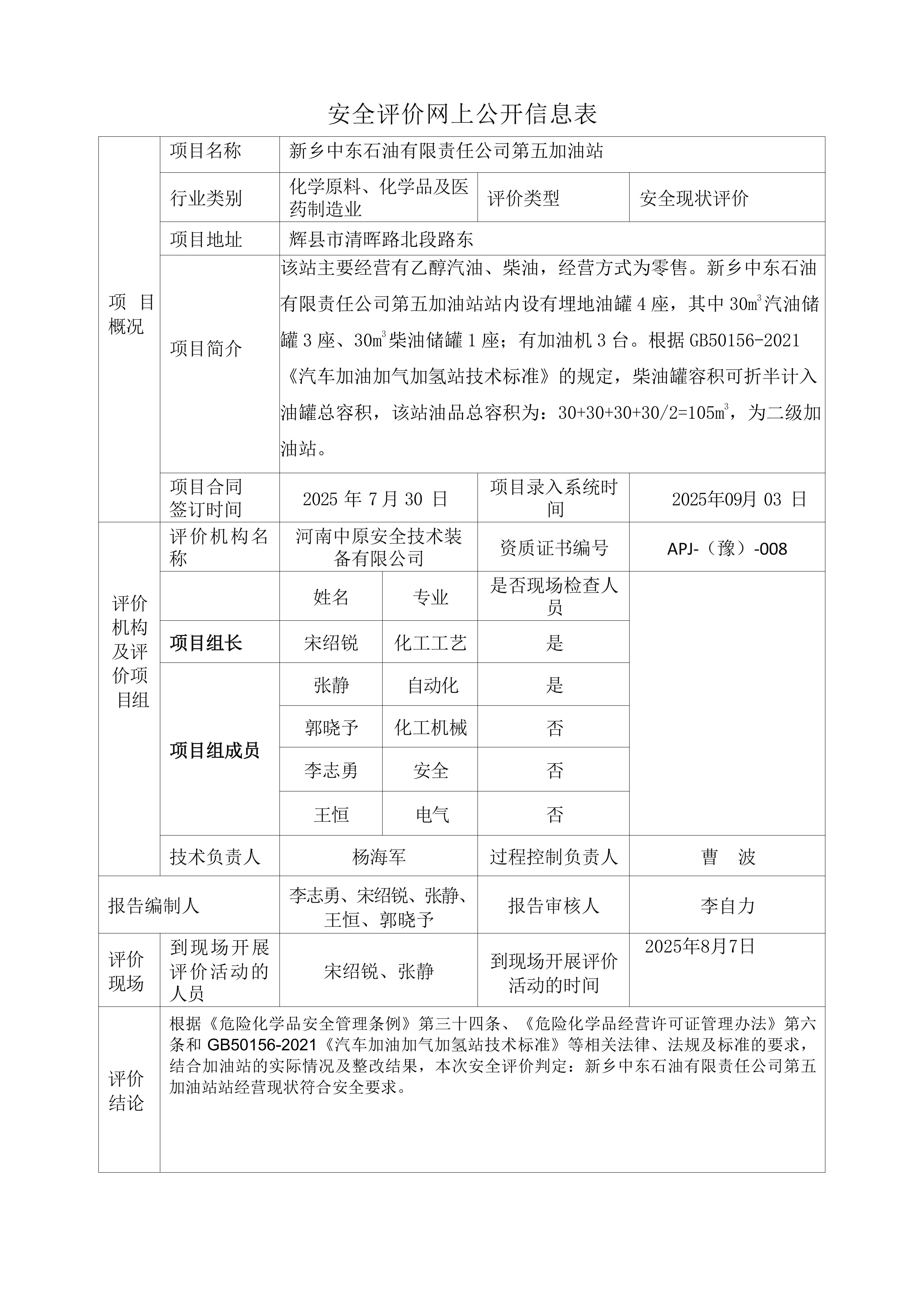 新乡中东石油有限责任公司第五加油站