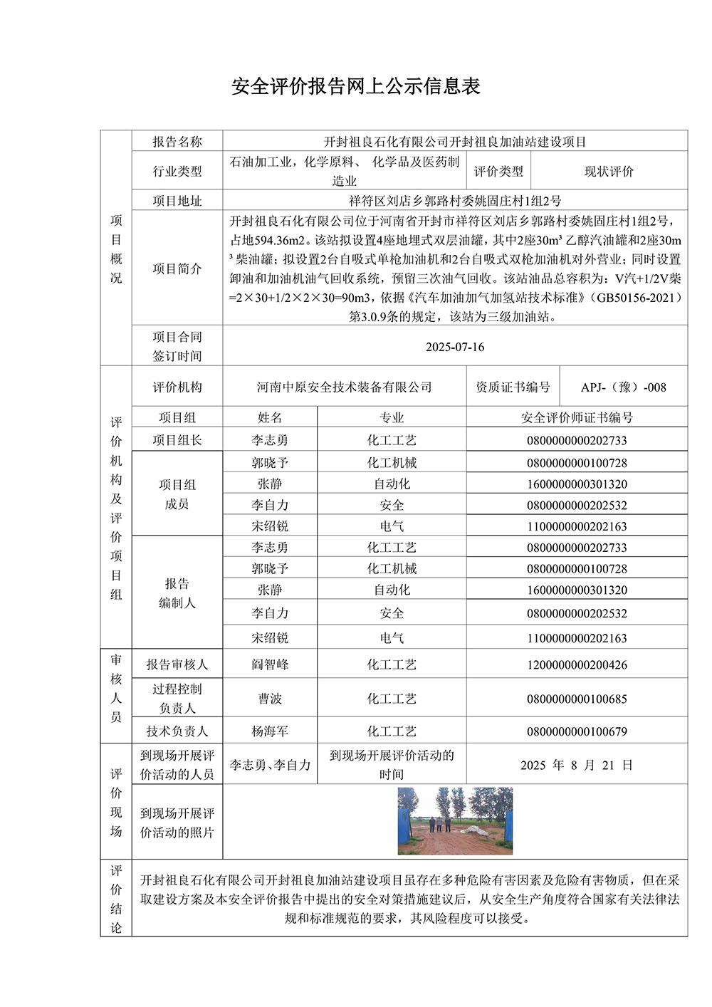 开封祖良石化有限公司开封祖良加油站建设项目