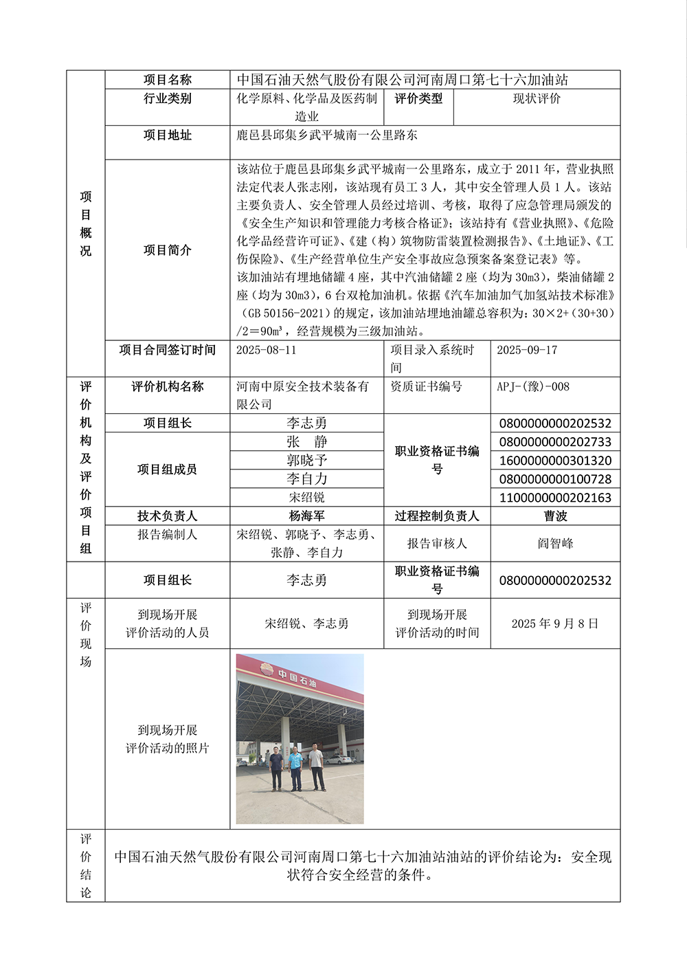 中国石油天然气股份有限公司河南周口第七十六加油站