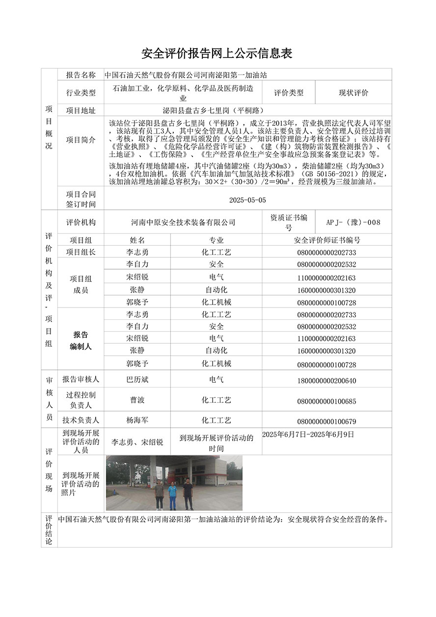 中国石油天然气股份有限公司河南泌阳第一加油站