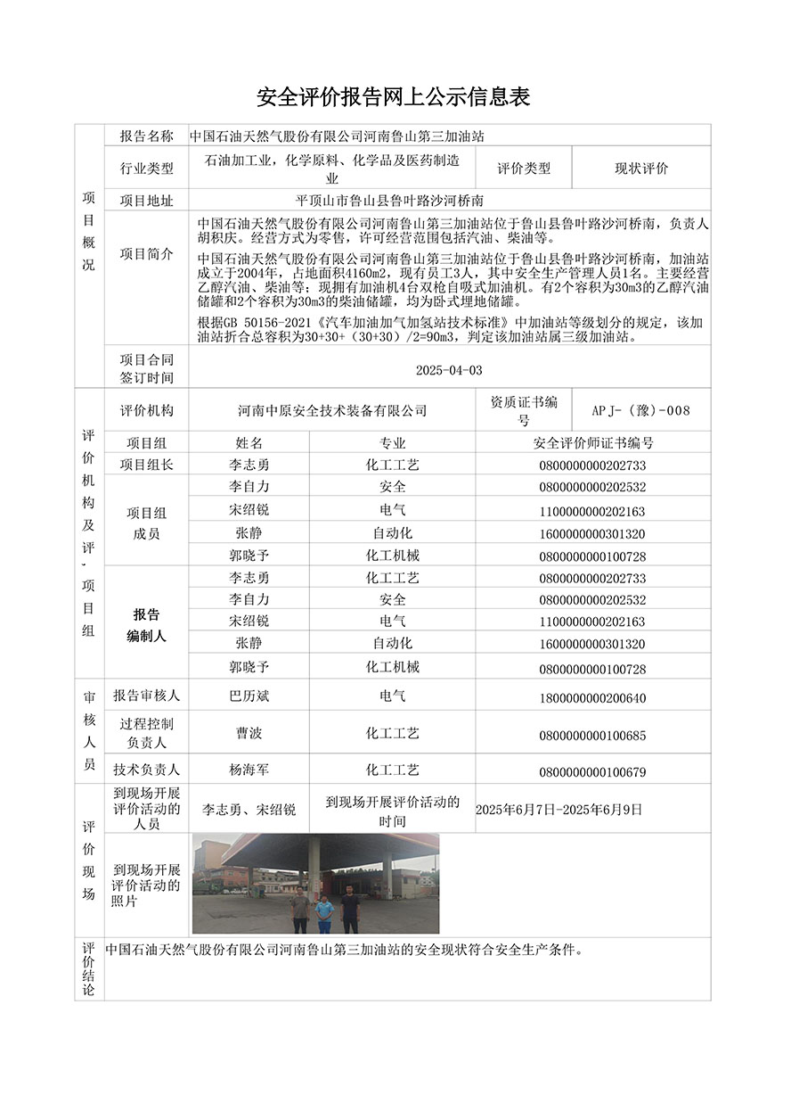 中国石油天然气股份有限公司河南鲁山第三加油站