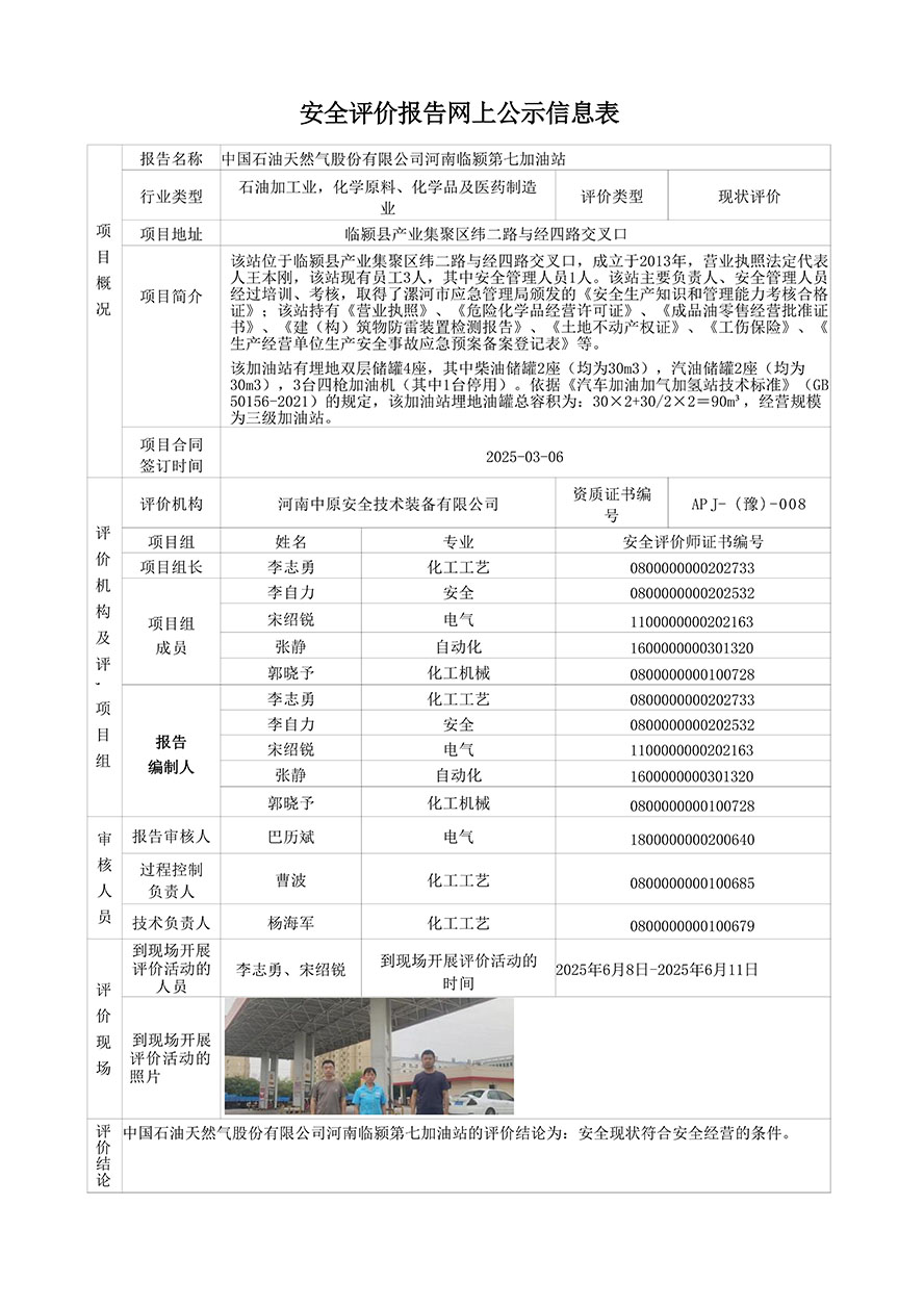 中国石油天然气股份有限公司河南临颍第七加油站