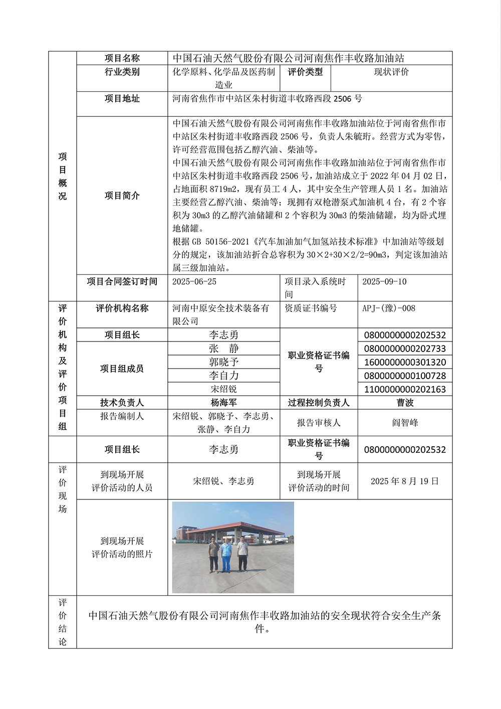 中国石油天然气股份有限公司河南焦作丰收路加油站