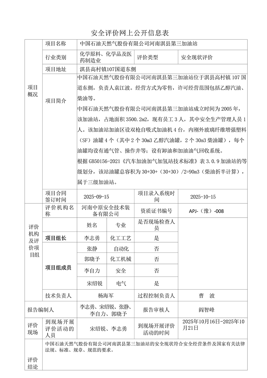 中国石油天然气股份有限公司河南淇县第三加油站